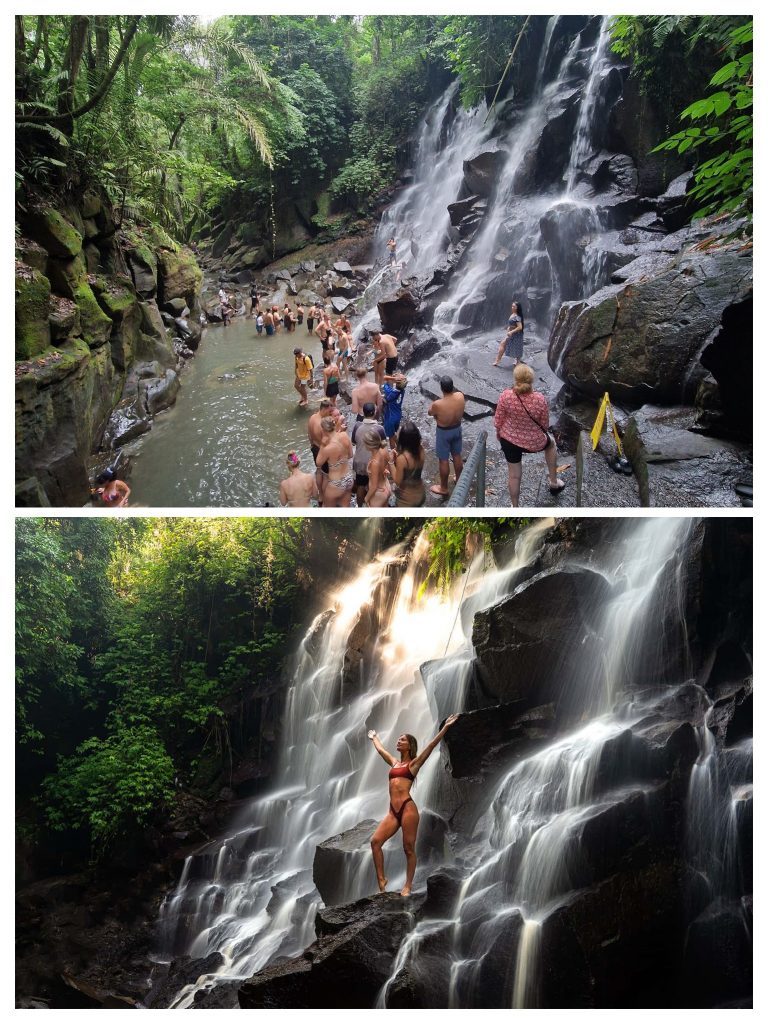 Nadat we inmiddels ook een keer avondeten op hadden bij Puspa’s Warung, besloten we deel te nemen aan haar kookles in de ochtend. We mochten 3 gerechten kiezen van haar simplistische menukaart, dus kozen we gado gado, satay en chicken curry. Het was erg leuk en bijzonder eenvoudig, eenvoudiger dan de Thaise of Sri Lankaanse keuken. Alle ingrediënten kun je ook prima halen bij de Albert Heijn, dus geef maar een gil als je de recepten wilt. Omdat we die dag al erg vroeg bij het zwembad lagen, besloten we aan het eind van de middag nog naar een watervalletje dichtbij te rijden. Deze Kanto Lampo waterval is erg bekend bij influencers en instagrammers, dus draaiden we om zodra we aankwamen. Soort plaatsvervangende schaamte voor ons mens-zijn?